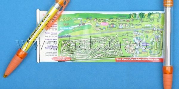 Normal size ballpoint pens contain a scroll out offset printed custom designed map at low price. The map is self-retractable to transparent barrel. Map only show up after pull the aluminum bar out. And it’s both sides. It could be an index map for new visitors of fair/tourist area/google map of your company location/shopping center. Thus, your clients get a graphic impresion of your company/tourist area/shopping center. And they can keep using the scroll map pens as it’s also a high quality ballpoint pens! Price is as low as USD0.36/PC (for quantity larger than 10K pcs, different quantity have different price. And please note that price may change subject to our online store). Free delivery to your door within USA/Canada/West Euro. Delivery time is about 2-4 weeks. You can order at our online store: